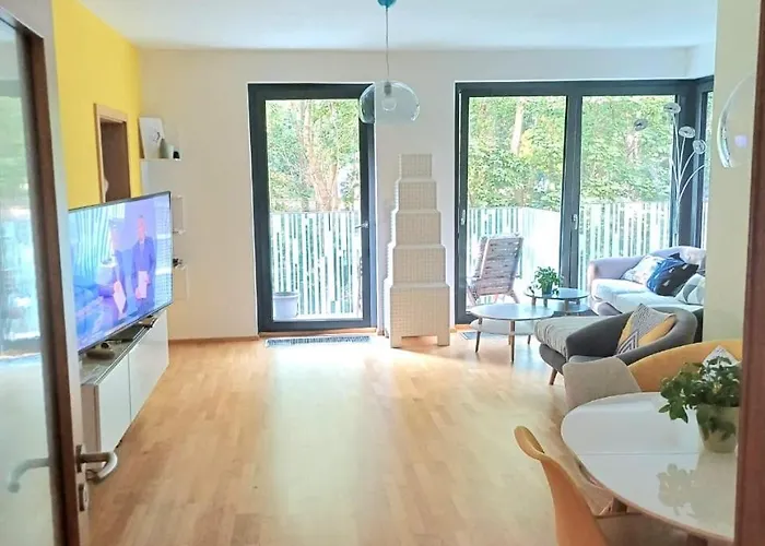 The 70 m² 10Min To The Center Modern Flat Apartment Prague offers proximity to a number of tourist attractions, such as Vila Flora, located about 10 minutes' walk away. Situated 400 metres from the New Jewish Cemetery, this 1-bedroom apartment offers a terrace where guests can relax and enjoy the garden view.